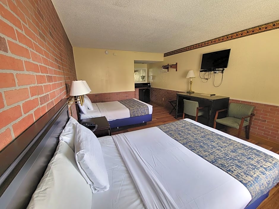 This room features 2 double beds, cable TV, a work desk, and a refrigerator.